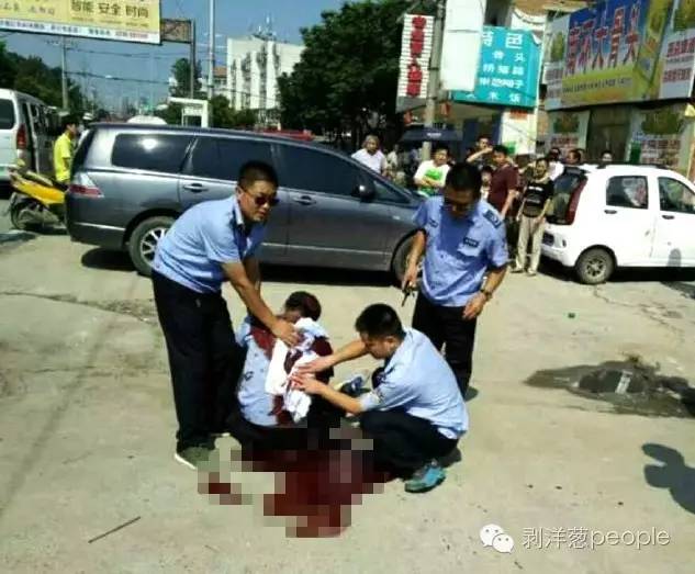 城管李伟躺在正阳县城南关街十字路口的西侧,一动不动;血液从身子下面流出,在太阳的炙烤下迅速凝结。