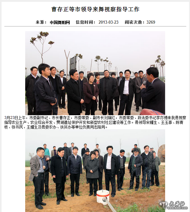 图片系2013年3月23日漯河市领导曹存正等视察舞阳县