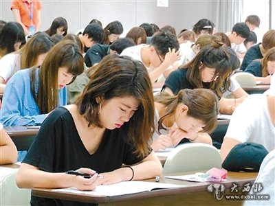 图为正在参加汉语水平考试的日本大学生