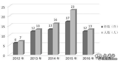 图一:2012年以来镇江市检察机关查办“小官巨贪”案件情况