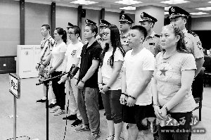 昨天,贾彩荣(右一)等7人因集资诈骗7000多万元在市二中院受审。 首席摄影记者 吴宁/摄