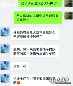 “直到最后我们都没有见到更高级别的领导出面来解决问题,听到最多的话也全部是不合理的,非常愤怒!”投诉人何先生通过短信的方式告诉记者。游客刘女士对记者说,自己从早上进入迪士尼玩,只玩了1个小的项目,人气很旺的加勒比海盗,雷鸣山漂流统统“中招”,遇到检修关闭的情况,令刘女士想不通的是,如果你这个项目有关闭检修的计划为什么不能够提前通知,让他们这些游客白白浪费了几个小时的时间?