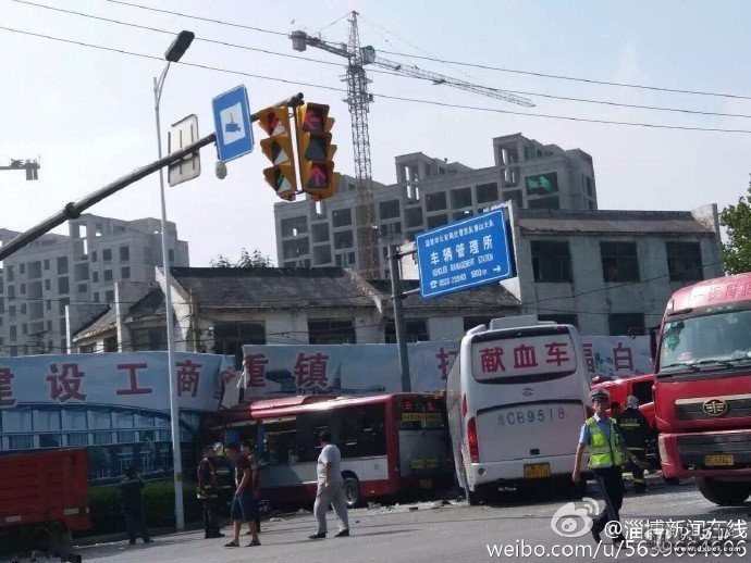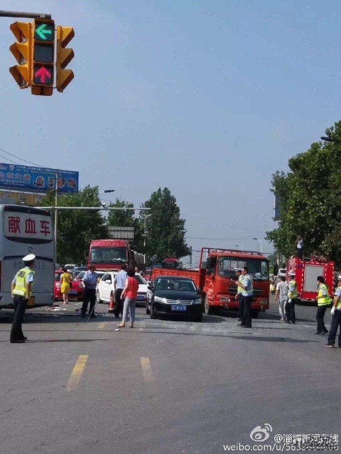 8月11日8时23分,山东N90876号低速货车顺博山区北山路由西向东行驶至博沂路掩的村路口处,先后与顺博沂路由北向南行驶的1辆公交车(鲁CG1836)、1辆大客车(鲁CB9518)、1辆小型客车及1辆二轮摩托车相撞,经初步勘验,造成公交车上4人死亡、低速货车上1人死亡、小客车上1人死亡,伤人情况正在核实。