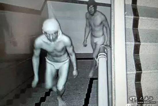 当 男子在一楼周围搜索时,其另一同党也裸身从洗手间进入屋子,两人在一楼徘徊搜索,前台、柜台、电脑台等抽屉都被翻个遍。后来,两人从楼梯道走到楼上,由于 楼上没有监控,看不到两人在楼上的行径。凌晨4时多,只见两人抬着保险柜下到一楼,一男子顺手从茶几上拿走钥匙,从楼梯门处离开。