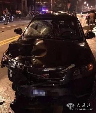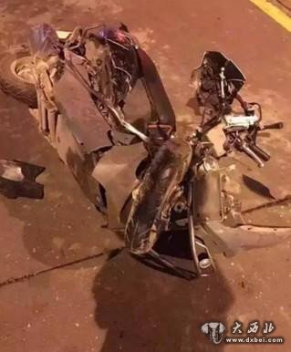 路上都是被撞碎的摩托车车身碎片,可见撞击时的力度不小。