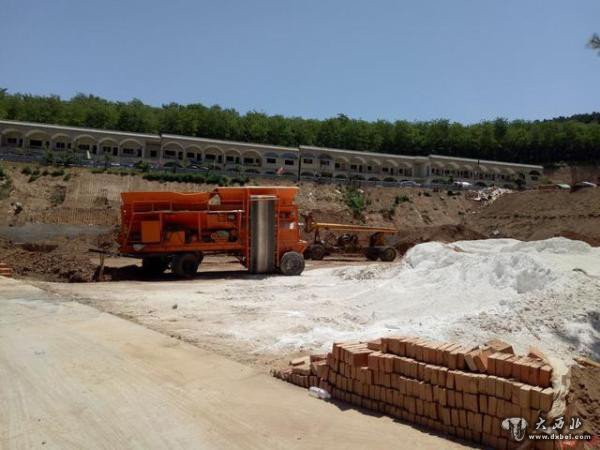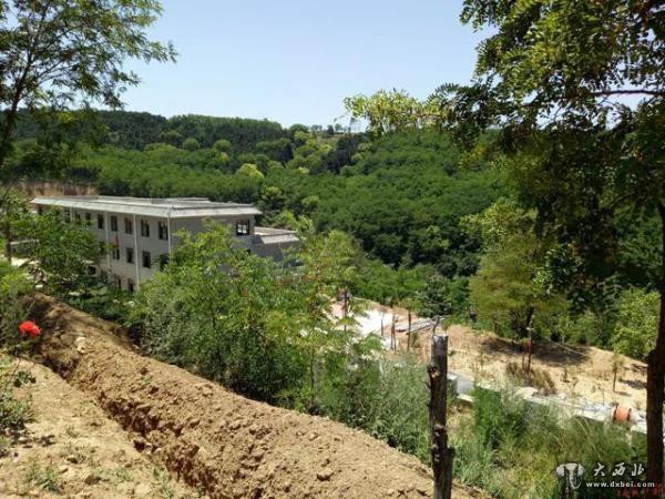 一片绿悠悠的林地中,光秃秃的黄土地及部分施工中的建筑物看起来格外刺眼。