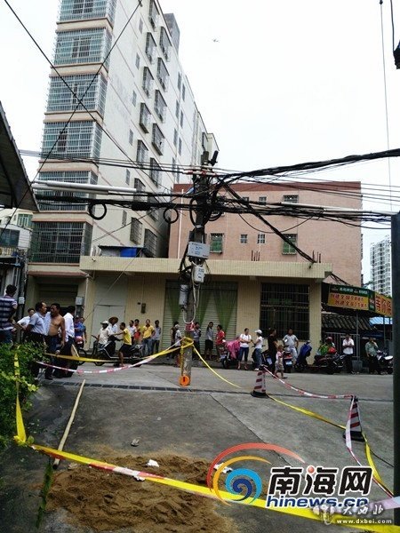 随后,中国电信海口分公司的工作人员也赶到现场,对方承认涉及这次意外的线路架设杆是他们公司竖立的,但责任并不完全在该公司这方。该工作人员称,该电线杆已有20多年,去年的时候,该处也发生过一起漏电事件,曾反映给供电局但没有引起重视,只是用几截简单的塑料管套来绝缘。