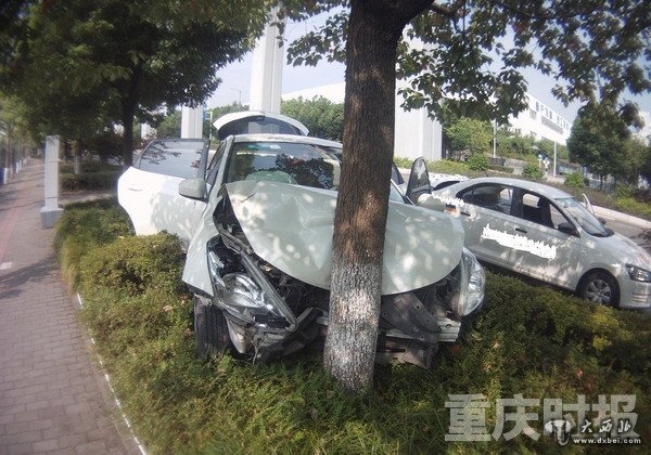 水帘遮住了驾驶员的视线,轿车撞在了树上