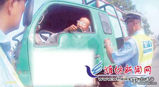 8月10日7时许,高密交警大队阚家中队交警在阚家镇下海路巡逻时,发现一辆大货车车牌号码与车厢上的放大号码不一致,立即上前检查。交警发现,该车前挡风玻璃上张贴的年审、强制保险、环保标签只到2012年,遂要求驾驶员出示相关证件,驾驶员称自己没有驾驶证。交警要求驾驶员到中队接受进一步调查,对方拒不配合。交警耐心劝说了20多分钟,该男子才慢慢下车。