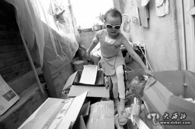 小雅妍在整理母亲捡回来的废品。