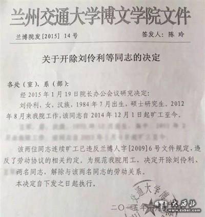 另据新京报报道,刘伶利案的二审代理律师蔡翔介绍,在兰州中院开庭审理刘伶利案件的当天上午,同一法院至少还有3名与刘伶利一样在兰州交大博文学院工作的患病职工被校方开除的纠纷案件在审。