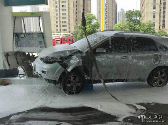 最后轿车“骑”在加油机上被卡在加油机与货车中间动弹不得;幸好被撞女子伤势较轻车辆损失也不大,但加油机损失10多万。