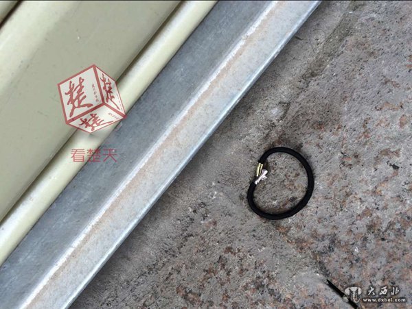 上午10时许记者到达现场时,店铺门紧锁,去世的小女孩已送到殡仪馆。图为卷闸门下疑似女孩下头发的橡皮筋。