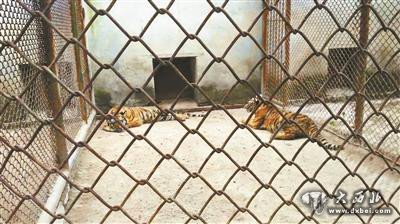 在休息区附近的动物展示区,北青报记者还看到了三只被关在笼子里的老虎,但笼子上并未标注老虎的品种。