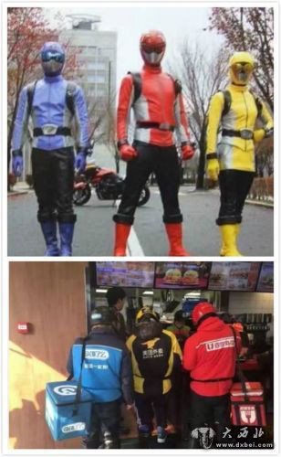 聊天过程中,汪超给TechWeb看一张图片,这是微博网友的一张神联想图片。把打怪兽的奥特曼和外卖送餐员放在一起,还配上了一句评论--曾经在东京打怪,现在在街头送外卖。