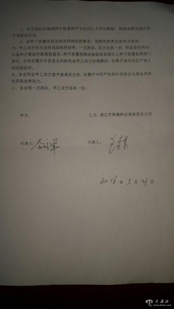 这份合同还提及,对于种子结算价格,即使收购的合格种子达不到相关标准,厚德种业也会实行亩保值价2300元进行收购。