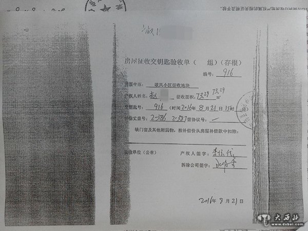 沛城街道提供的材料显示赵家已交钥匙。