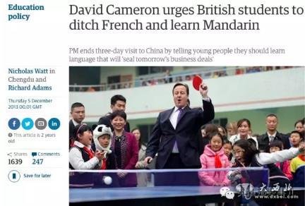 伦敦大学教育研究院则计划在该项目结束的时候能培养出1000名合格的中文老师。英国文化委员会的学校课程设置主任表示:“如果英国想要在国际舞台上保持竞争力,我们就需要更多的年轻人会说流利的中文,这对他们以后出国工作或者在英国创业都会有很大的帮助”。其实,英国政府对中文的重视很早之前就开始了...2013年,卡梅伦以首相的身份访问中国时就说过这么一段话:英国的学生应该要抛弃法语,开始学习中文