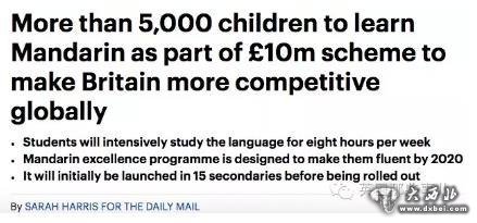 于是... 我们今天在英国媒体上看到了这个新闻...为了让英国人在国际上更有竞争力,作为1000万英镑中文项目的一部分,5000多个孩子要开始学习中文。