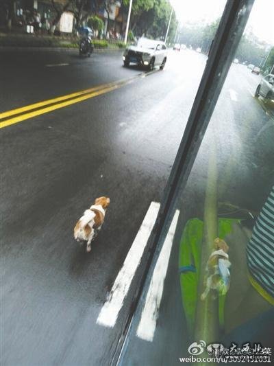 “今天我坐一路公交,看到了这一幕,心酸……”9月4日中午12时许,新浪微博网友“喜欢你微笑123笑”发微博称,“公交不让带宠物,主人也不下车,都半个多小时的车程了,(狗)还跟着追主人,我上车,它在公交旁,我下车了,它还跟着跑。”该微博配发了9张图片:大街上,一条黄白相间的狗追着一辆公交车奔跑,不少车辆从狗身边经过,险象环生。