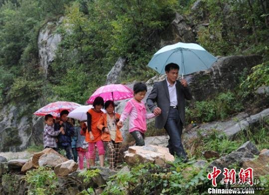 蜿蜒崎岖的山路上,张玉滚一手打伞一手紧紧拉着一位小学生,同时还不时地回头叮嘱身后的几个学生小心脚下……这是教师节到来之际记者在河南南阳采访时,看到的感人一幕。而这一幕的发生不是偶然,在当地早已十分寻常。