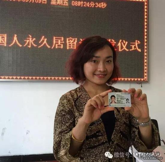 “伊拉”领到她的中华人民共和国外国人永久居留证
