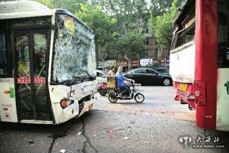 昨日上午8时许,在西安长乐中路圣荣广场站附近,13路、42路和4路3辆公交自东向西连环相撞,造成司机及多名乘客受伤。