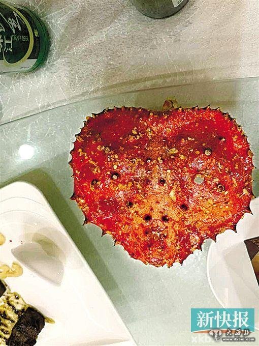 “点菜的时候大家就觉得这只蟹的蟹壳很奇特,蟹头的壳是有点弯的,其中一条腿根还有很明显的 刀疤 。”张密说,大家觉得好玩,当时就拍照留念保存,负责称重的服务员还告诉他们,这处“刀疤”不影响食用。