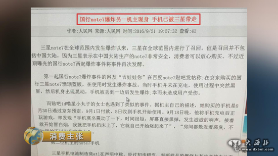 9月22日上午,《消费主张》记者看到了一篇来自人民网的报道,报道称第二位手机爆炸的消费者的手机也已被三星带走。
