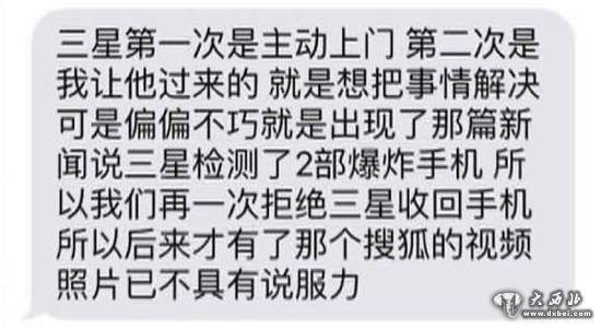 他通过短信告诉记者,三星公司曾经两次来过他们家,第一次是主动上门,第二次是这位消费者让三星公司上门的,目的是希望三星公司把事情解决。