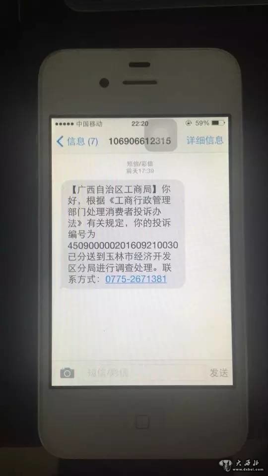 9月21日,他接到一条来自工商部门的短信,随后,他接到了该分局来电,让他补充递交投诉举报所需要的材料。