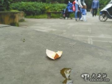 花坛上,还残留有部分蛋壳碎片。