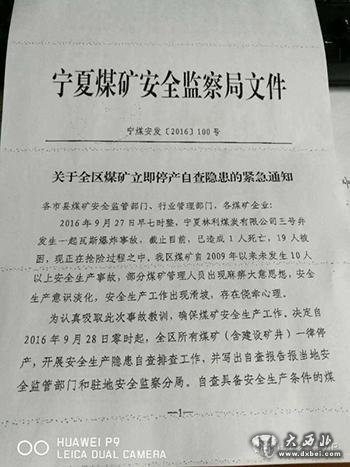 9月27日,宁夏煤矿安全监察局为认真吸取此次事故的教训,确保煤矿安全生产工作,印发紧急通知。