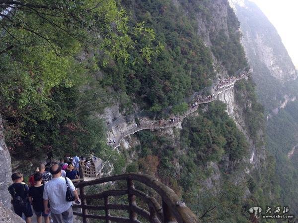 澎湃新闻走访发现,龙缸景区临悬崖地段的景点,垃圾箱安置得非常密集,沿途也多处竖有“请勿乱丢垃圾”的提示标语。景区相关负责人告诉澎湃新闻,由于栈道最宽处只有2米多,狭窄地段能3人通过,遇上黄金周旅游旺季,清洁工人根本没办法到栈道清理垃圾。澎湃新闻走访发现,当垃圾桶满后,有的游客就将矿泉水瓶等垃圾随地丢放。