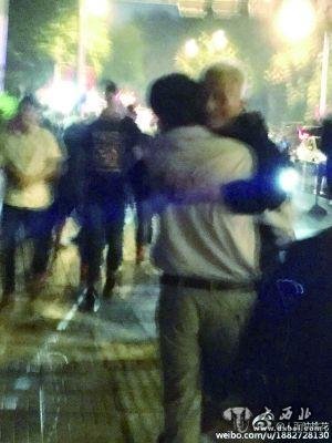 照片中,昏黄的灯光下,一位身穿灰白色上衣的中年男子,紧紧抱住一位老人。网友附的文字来自网友的记录:10月4号,在南京中山陵景区,一位头发花白的老人家走着走着,说累了,于是,他身边的儿子一把抱起了老人,那姿势,像抱着自己的孩子一样。而怀里的老父亲,也像孩子一样笑呵呵地任由被儿子抱在胸前。两人继续往前游览,网友就在那一瞬间,掏出手机按下了这张照片。