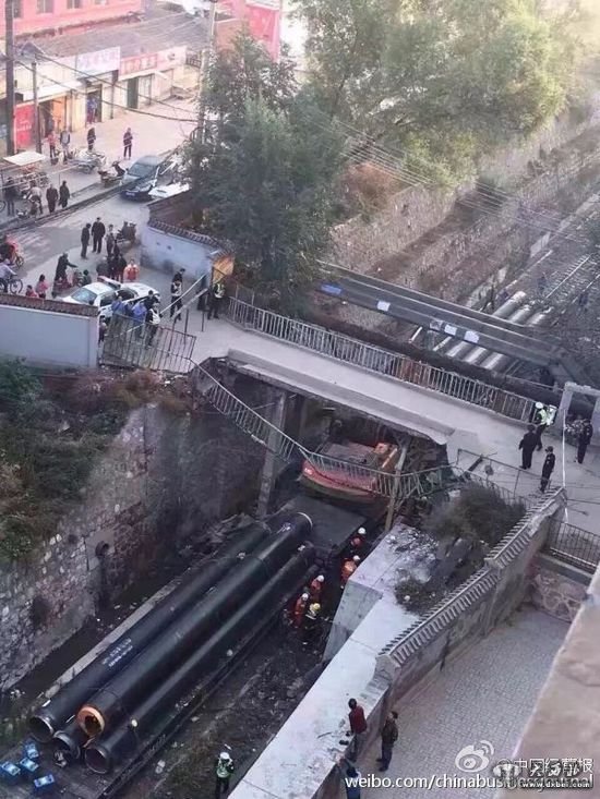 太原一火车与桥梁发生剐蹭 或因火车装货超高导致
