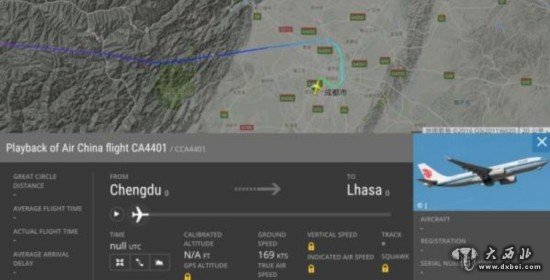 10月16日,成都双流国际机场,国航CA4401航行轨迹,显示起飞后右转,与计划航线方向几乎完全相反。(据飞行数据网站Flightradar24)。