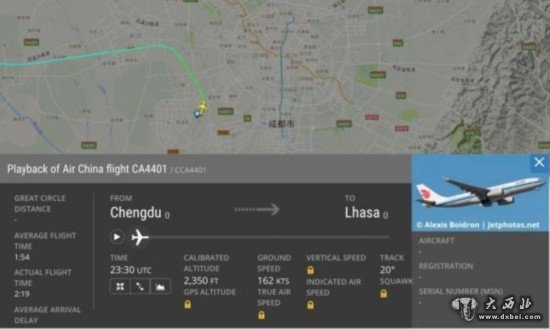 国航CA4401的正常飞行轨迹(据飞行数据网站Flightradar24)。