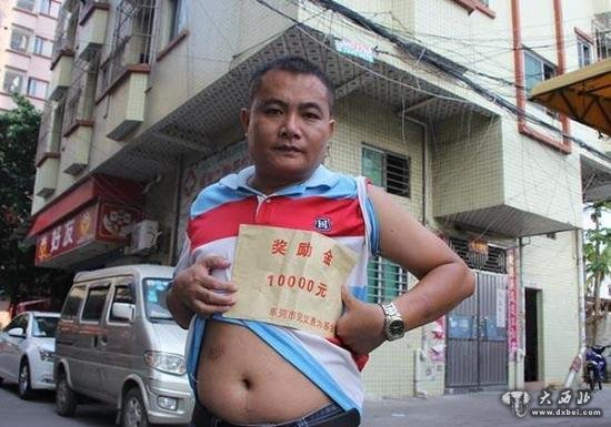 去年7月11日,因路遇治安队员追赶劫匪,37岁的欧桂林挺身而出助擒歹徒受伤,其行为于同年8月27日被认定为“见义勇为”,并获得了荣誉证书及一次性奖励慰问金1万元。