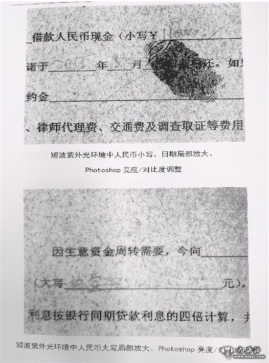 事实上,使用消字笔逃避债务,这些小伎俩在专业技术人员的手里,都会露出原形。绍兴市一名刑侦民警介绍,虽然借条上的表面字迹消失了,但写字需要力道,或多或少会在纸上留下压痕,通过特定角度的光照,或者采用特殊仪器鉴定,都会将残留的书写痕迹复原。
