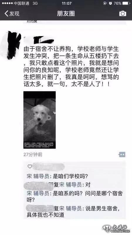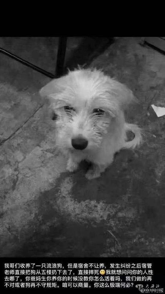 高校宿管被曝将流浪狗从楼上扔下摔死 校方回应