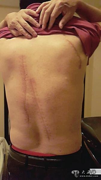 李耀清后背长长的刀伤触目惊心。图片来自网络