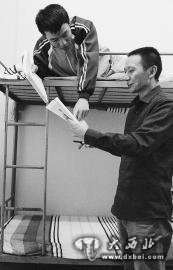 回到寝室,沈兴培(下)和儿子沈霖(上)利用午休时间讨论习题。