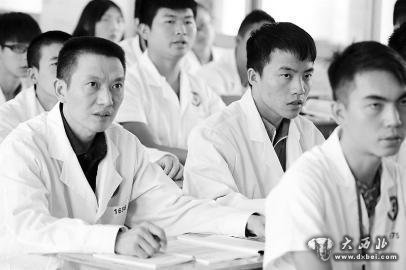 沈兴培是南充市高坪区喻家乡十圣村的驻村医生。他从医近30年,通过师承学习和自学相继考取了中医执业医师资格证、医师资格证等证书。2008年,沈兴培通过成人考试被成都中医药大学中西医结合专业录取,由于当时家庭原因最终未能去上学。“能坐进课堂系统学习医学知识一直是我的梦想,今年终于实现了。”了解到南充卫生学校开办农村医生班,免费招收农村学员的信息后,沈兴培决定和儿子一起去读书。“学校里大多是不到20岁的小娃娃,我在里面年龄最大,但我会慢慢适应过来。在学习上要比这些娃娃更加刻苦,做好表率。”沈兴培十分珍惜来之不易的学习机会。