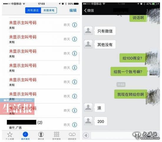 “实在没有办法了,我就加了短信上的微信,对方要求交200元才能解除。”甘先生说,当天中午12时许,添加了“报上号码不然无视”的微信,对方只能留言对话,并没有通过他添加好友的请求,而是让他另加一个微信号进行沟通。但结果是他交了200元后,对方仍然进行“呼死你”。