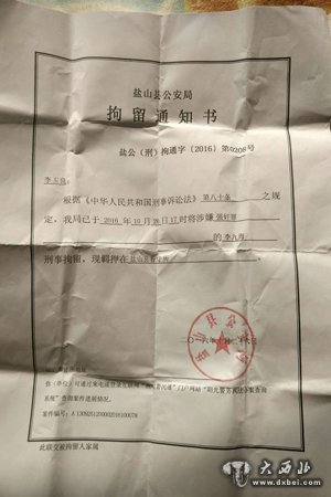 李九海的亲属向新京报记者出示的拘留通知书显示,10月26日,盐山县公安局以涉嫌强奸罪将李九海刑事拘留,并羁押于盐山县看守所。据亲属介绍,李九海今年50岁,系盐山县孟店乡农民,因涉嫌强奸同村一名15岁少女,于10月26日向当地派出所自首,随即被刑拘。4天后的10月30日上午10点左右,家属接到看守所通知,称李九海已于当日上午5点多在看守所去世。