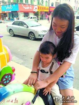 洋洋带着弟弟玩耍。