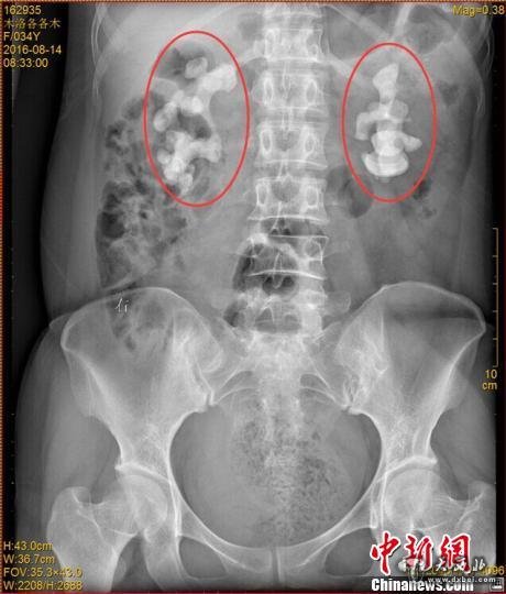 “临床上,双肾长巨大结石的患者一般都是中老年男性,女性较为少见,年轻女性更加罕见。”四川省结石病医院常立高医生详细检查后发现,该女子双肾内空间几乎被结石全部填满。他询问患者后判断,该罕见病例的出现与女子常年喝生水有直接关系。