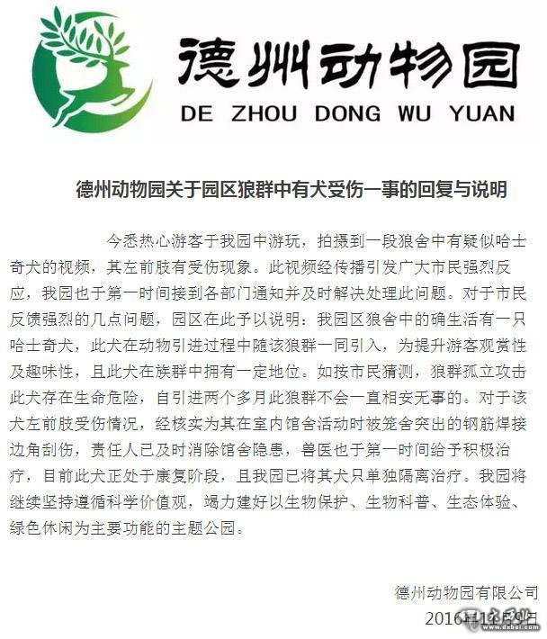 昨天下午5点,德州动物园方面对此事进行了说明和答复。