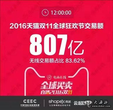 截止今天中午12点,天猫双11的全球成交额已经突破807亿!创造历史最快纪录。